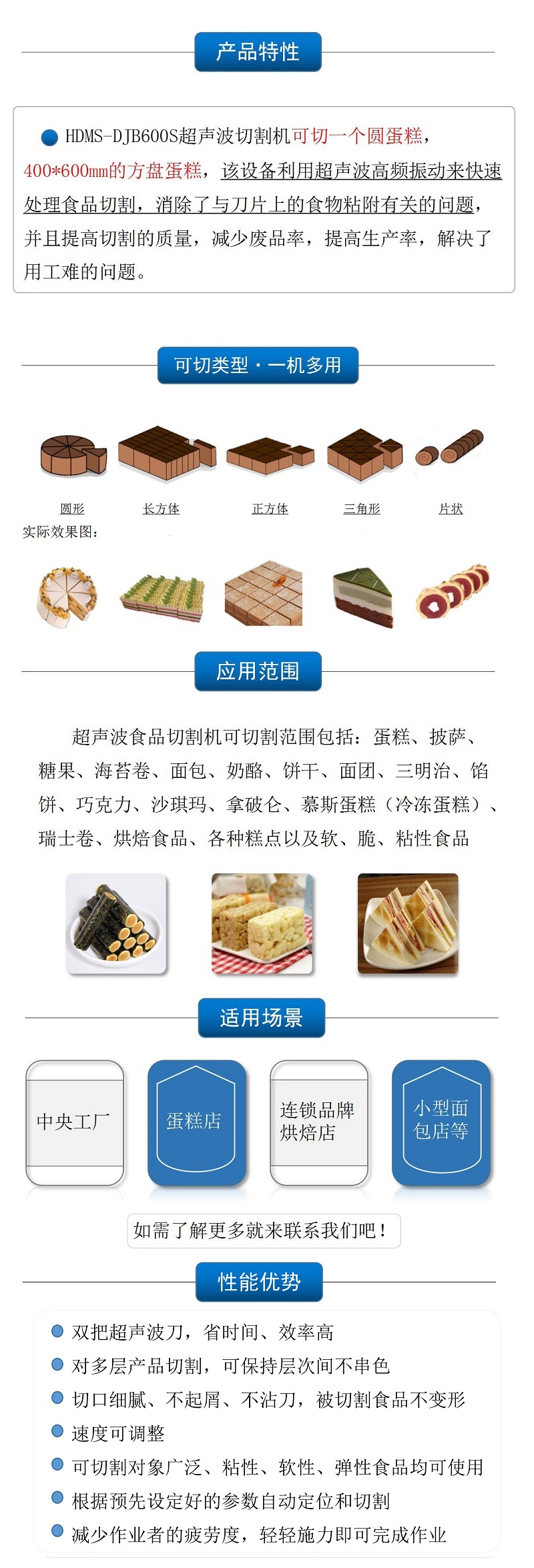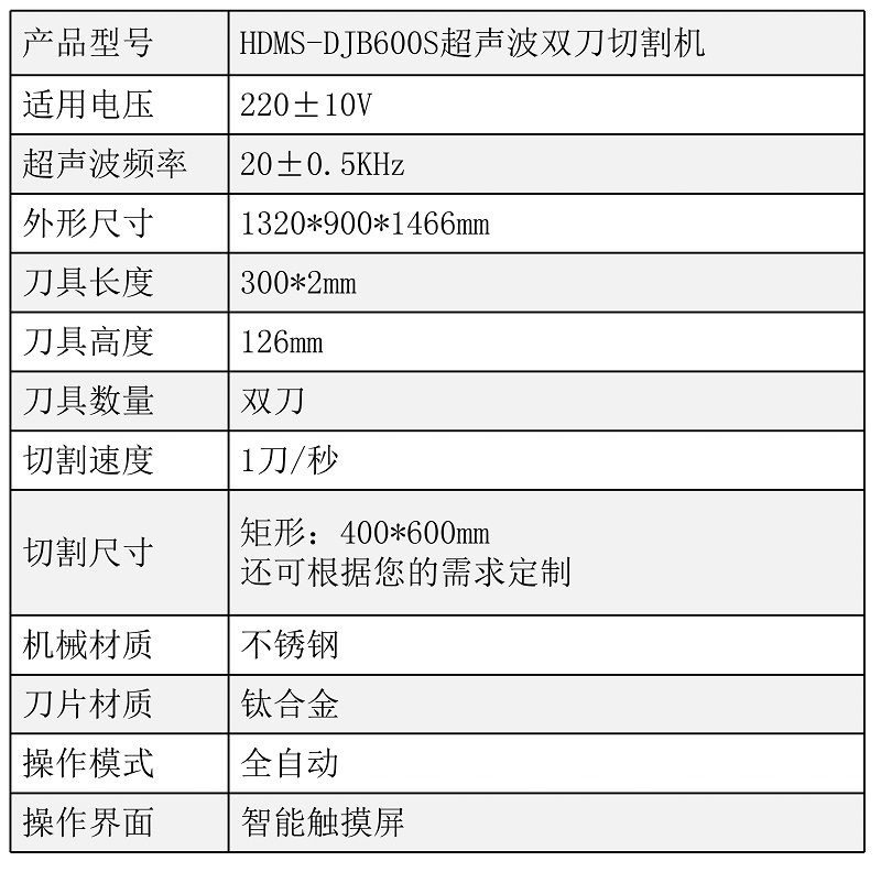 該設備配備雙把超聲波刀片,既可切方蛋糕,也可同時切兩個圓蛋糕,還具有自動上水洗刀、安全光柵的人性化功能,效率高,更方便